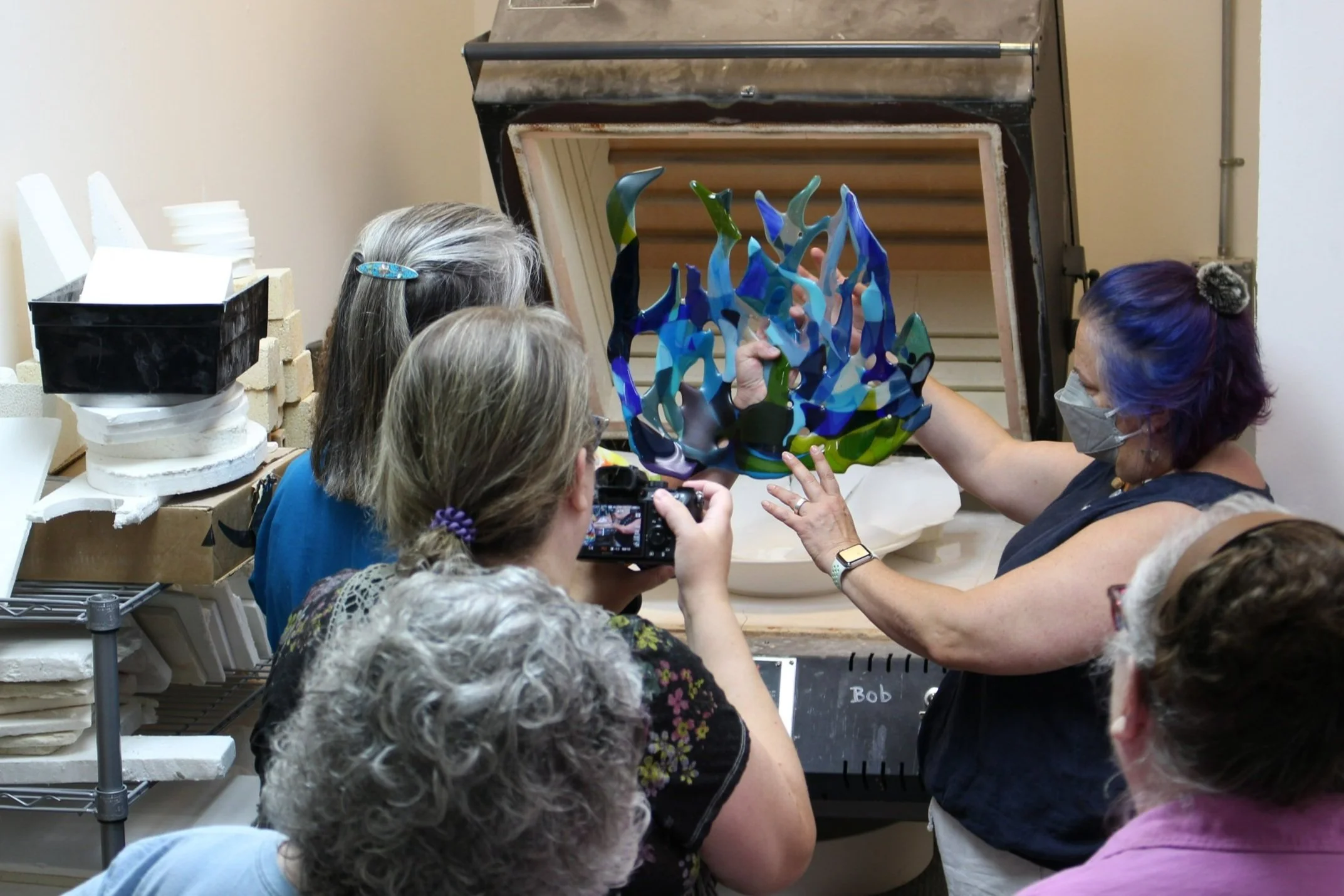 Our Open Studio is your home base for fused glass exploration. Whether you’re diving into your own project, following an online tutorial, working through an e-book, or remaking projects from past class, our fully stocked studio is free so that you have all you need to explore your glass art.