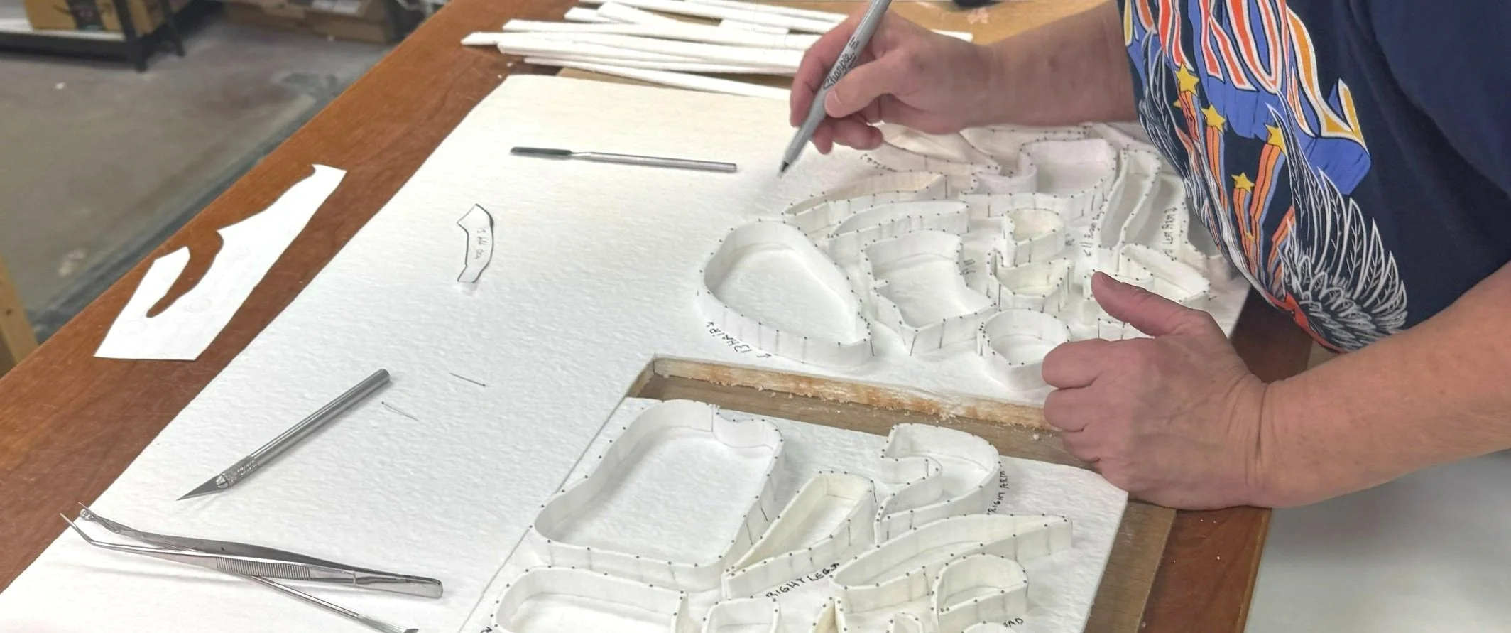 A Work Table with fully stocked drawers that include cutters, grozers, running pliers, nippers, etc... (Tables are a first come first serve basis, no reservation needed.)